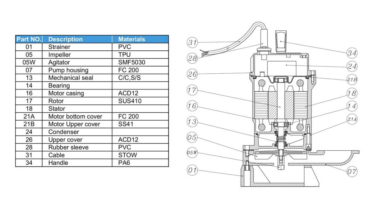 MODELPKJR-400AAansluitdiameter50 mm (2″)Totale Opvoerhoogte11 m (36 ft)Opvoerhoogte215 L/min (3400 GPH)Voltage220 VFrequentieNominale stroom 2.8 A Output400 WVerbruik600 WWatertemperatuur5-…40 CPercentage gesuspendeerde vaste stoffen10% *Max. Grootte van de vaste stof 10 mmKabel10m
