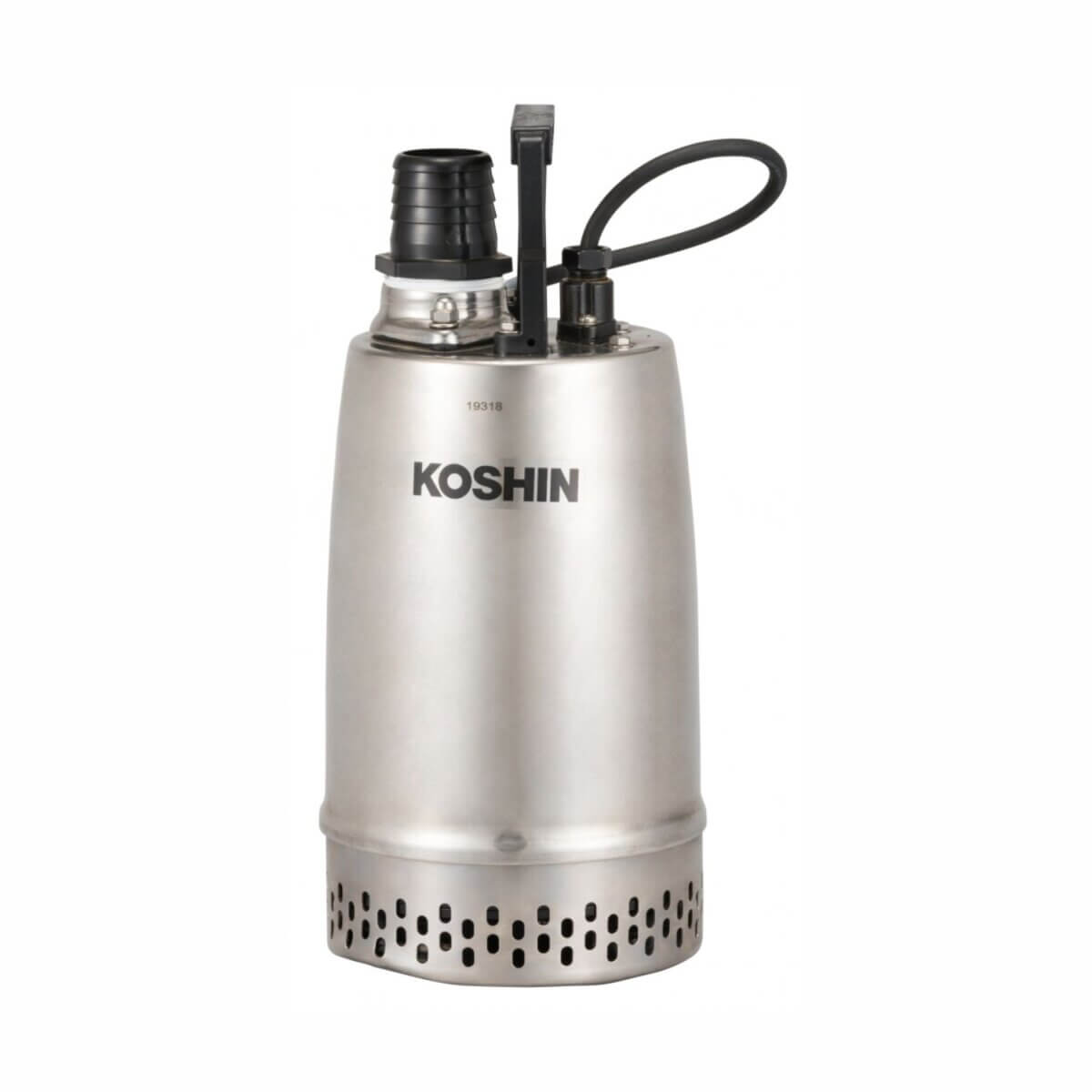 Koshin dompelpomp met 50 mm spuitmond voor het verpompen van modderig of vuil water met zand. Debiet 325 l/min, roestvrijstalen behuizing.
