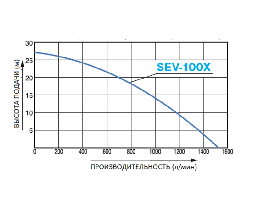 Klantencatalogus SEV-100Xhandleiding SEV-100xMODELSEV-100XAansluitdiameter100 mm (4″)AansluitdraadBuitenste pijpdraad BSPTotale opvoerhoogte28 mZuigsnelheid1500 L/minMax. Zuighoogte8 mGrootte van de korrelsMax. 9 mmMotor typeLuchtgekoelde 4-takt benzinemotor met geforceerde.benzinemotor met geforceerdemotorKOSHIN K300Kubieke inhoud301ccNominaal vermogen5,0 kW (6,8 pk) / 3600 rpmMax. Vermogen6,0 kW (8,2 pk) / 3600 tpmBrandstofGasvrije autobenzineInhoud brandstoftank5.9 LContinu bedrijfstijdOpprox. 1,8 uur.BeginmethodeOpwikkelstarterStandaardaccessoires1 spatlap,